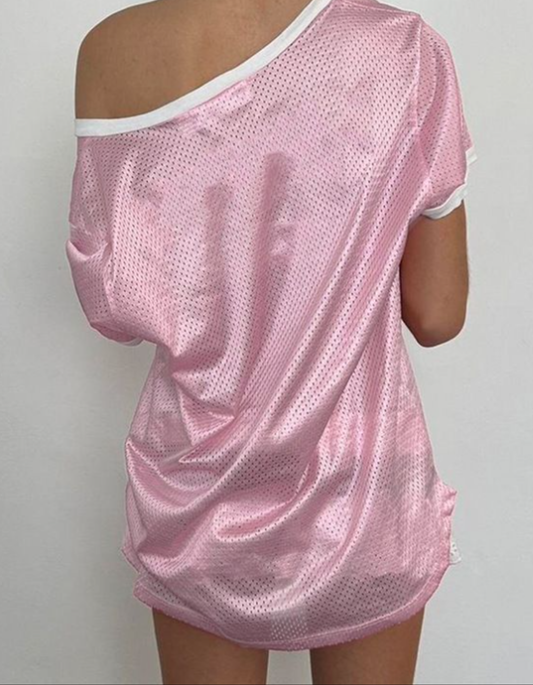 Pink Varsity Vibe Mesh Jersey Tee
